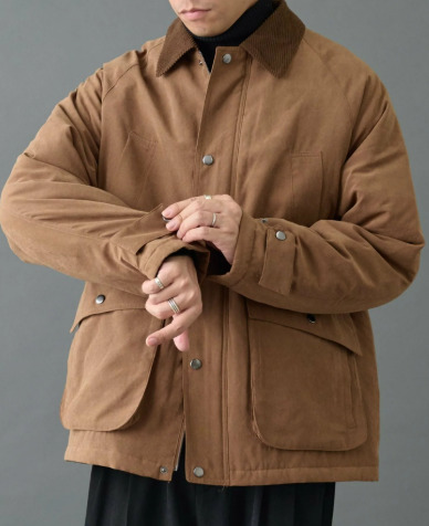 こちらのジャケット、クラシックなハンティングジャケットのディテールを取り入れつつ、シルエットは今っぽくモダンに仕上げてるのがポイント。