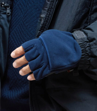 こちらのミトンはPOLARTEC素材で保温性バツグンなんですが、カバーが取り外せるようになっていて、細かい作業やスマホ操作もストレスなしでできるんです。