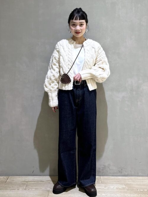 着用トップス:LOWRYS FARM ダブルジップクロップドカーディガンLS