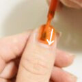 ③ ①の位置から爪根元に向かって筆を逆撫でるように液を運び縁を作る。