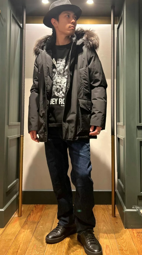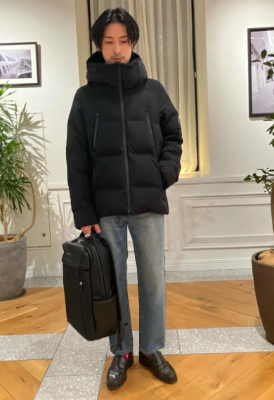 スーツにも勿論に合いますが、ダウン+ジーパンのようなカジュアルなスタイルもこの通り!