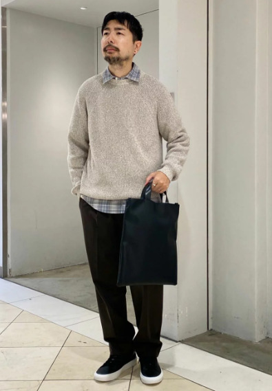 シンプルなニットやスラックスと合わせても、だらしなく見えません。
