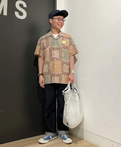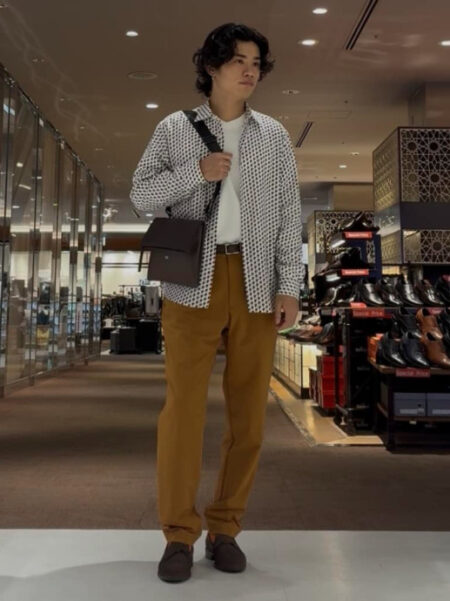柄シャツ×イージーパンツ