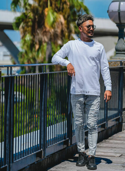 ロンTがシンプルだからダメージ加工のデニムがとても合いますね!