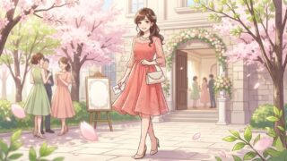 カジュアルな中にもちょっとした大人のキュートさを感じさせるコーデです。